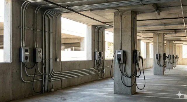露出配管、埋設配管などを使って車用EVコンセントの設置を自社で施工しております。